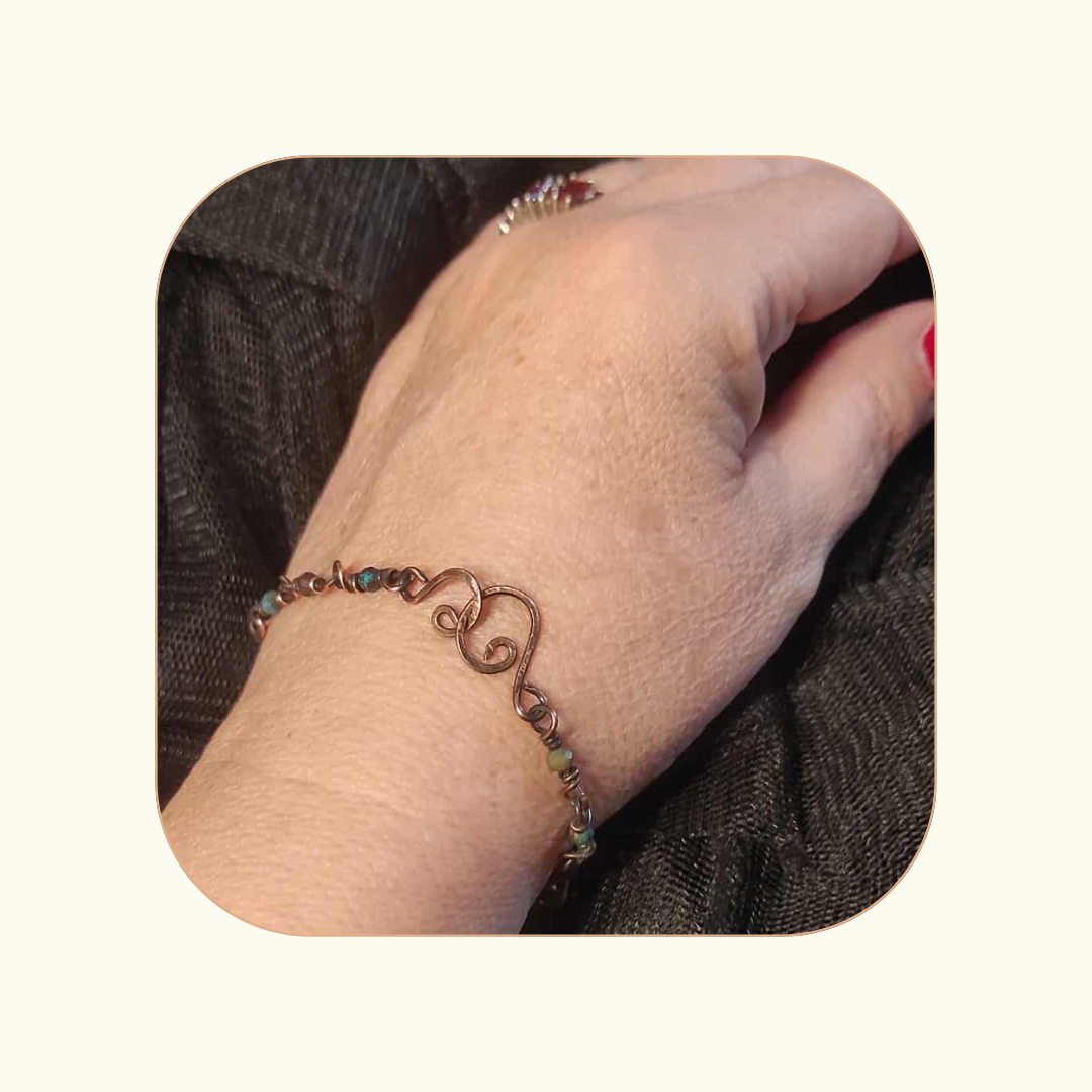 Każda z tych bransoletek to fragment większej opowieści – o cykliczności, przemianie i kobiecej sile, która płynie jak miedź pomiędzy kamieniami.