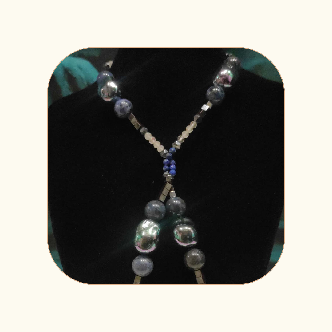 Naszyjnik, który łączy w sobie energię nieba, księżyca i oceanu — talizman dla wiedźmy, która chce iść przez życie z jasnością, intuicją i spokojem serca., która pragnie jasnych myśli, mocnej intuicji i emocjonalnej równowagi