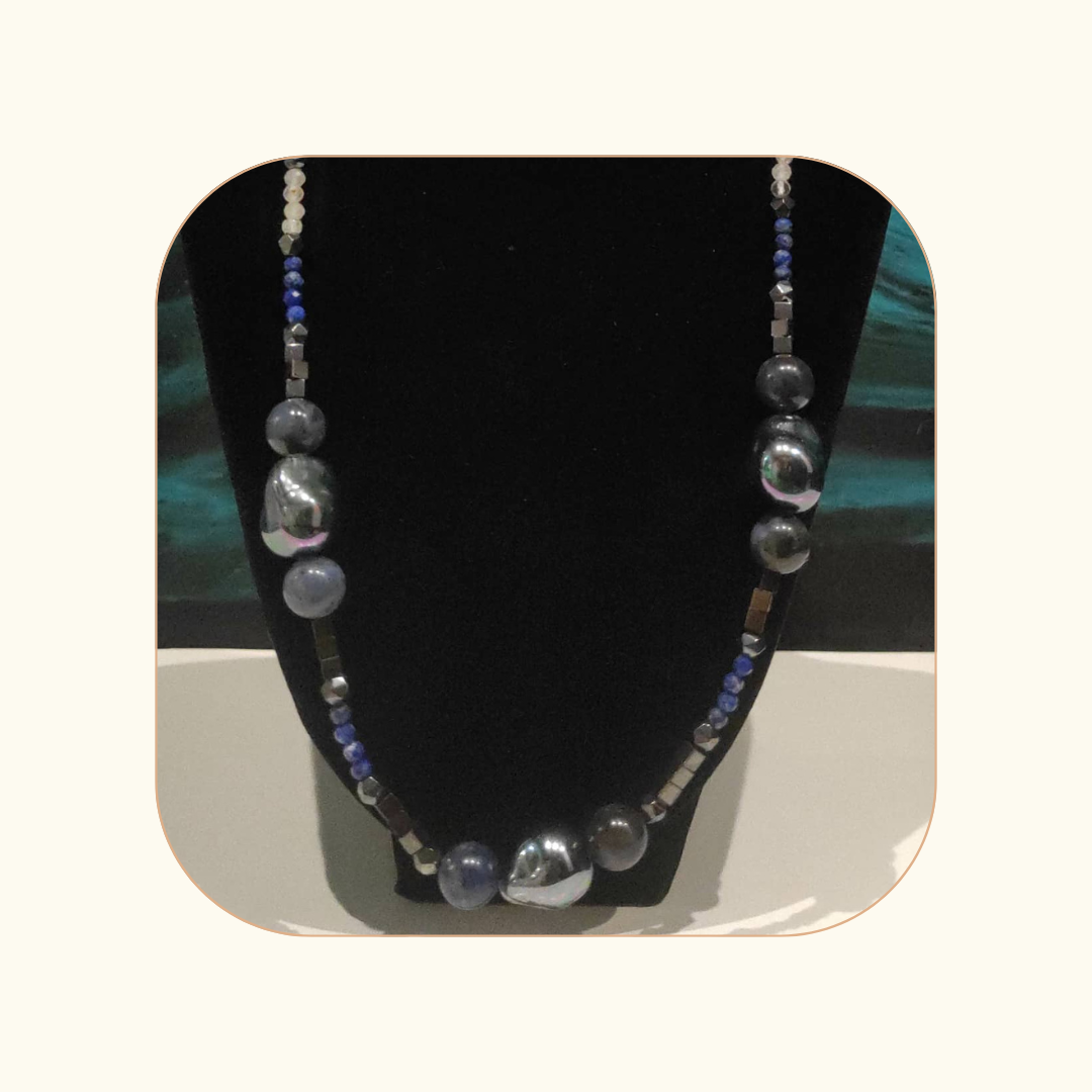 Lunarna głębia – perła seashell, kamień księżycowy, lapis lazuli