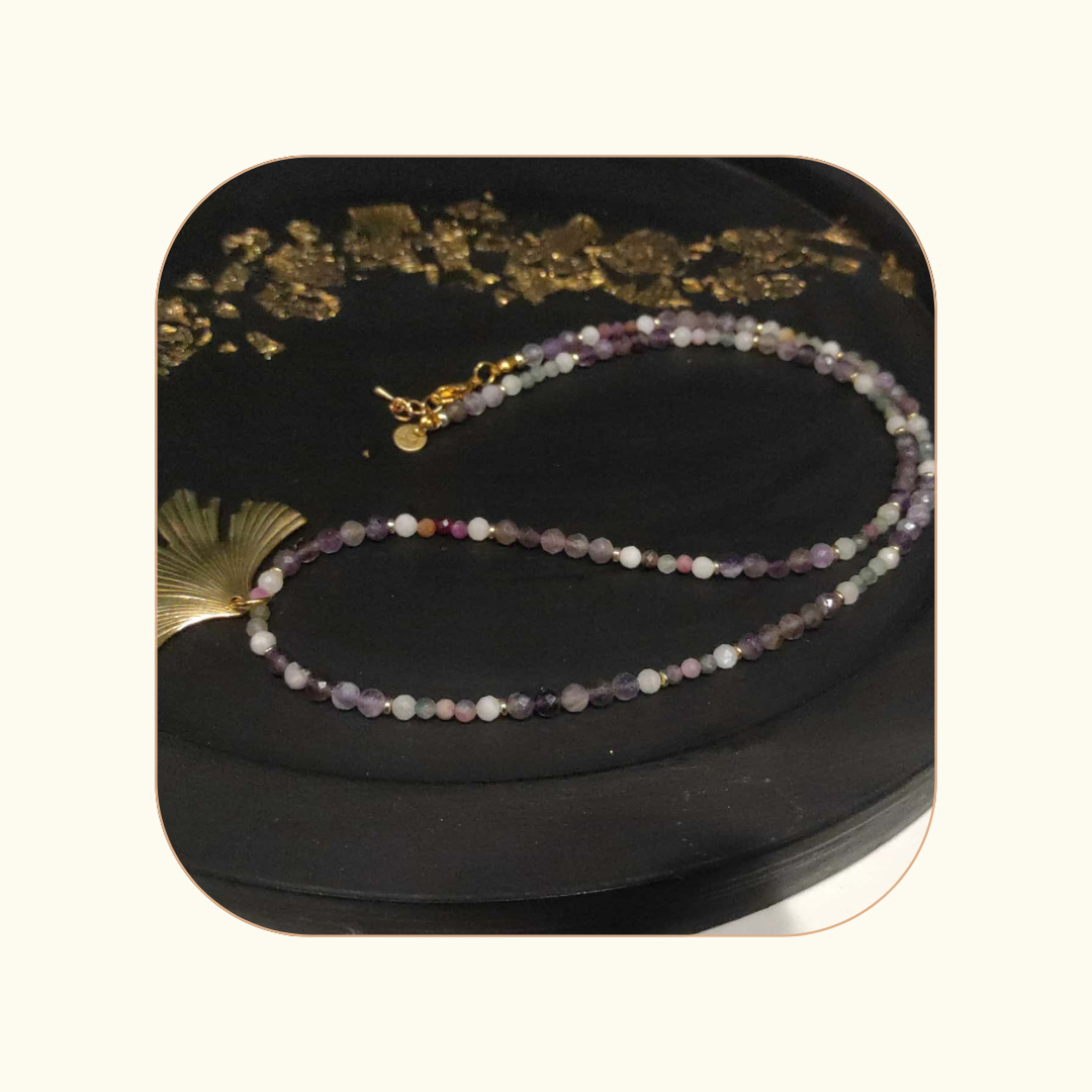 Złote hematytowe przekładki  – stabilizują energię całego naszyjnika, uziemiając i wzmacniając jego ochronną moc.